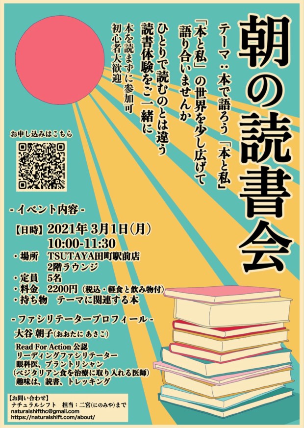 読書はインプットではなかったと気づかせてくれたのが、RFA認定リーディングファシリテーターである朝子さん。それは、瞑想したり自分と対話したり、時に今まで信じていたことを覆すパラダイムシフトを経験するものでした。みんなでの読書は、それを更に促すきっかけだと思います!